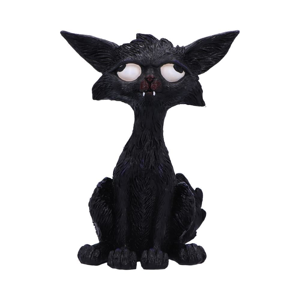 Sourced from Nemesis Now’s esteemed collection. Sculpted from premium resin, this endearing black cat sports crossed eyes, a relaxed pose, and adorable fangs, radiating irresistible appeal. With legs splayed and a winsome expression, it exudes a playful charisma that captivates.