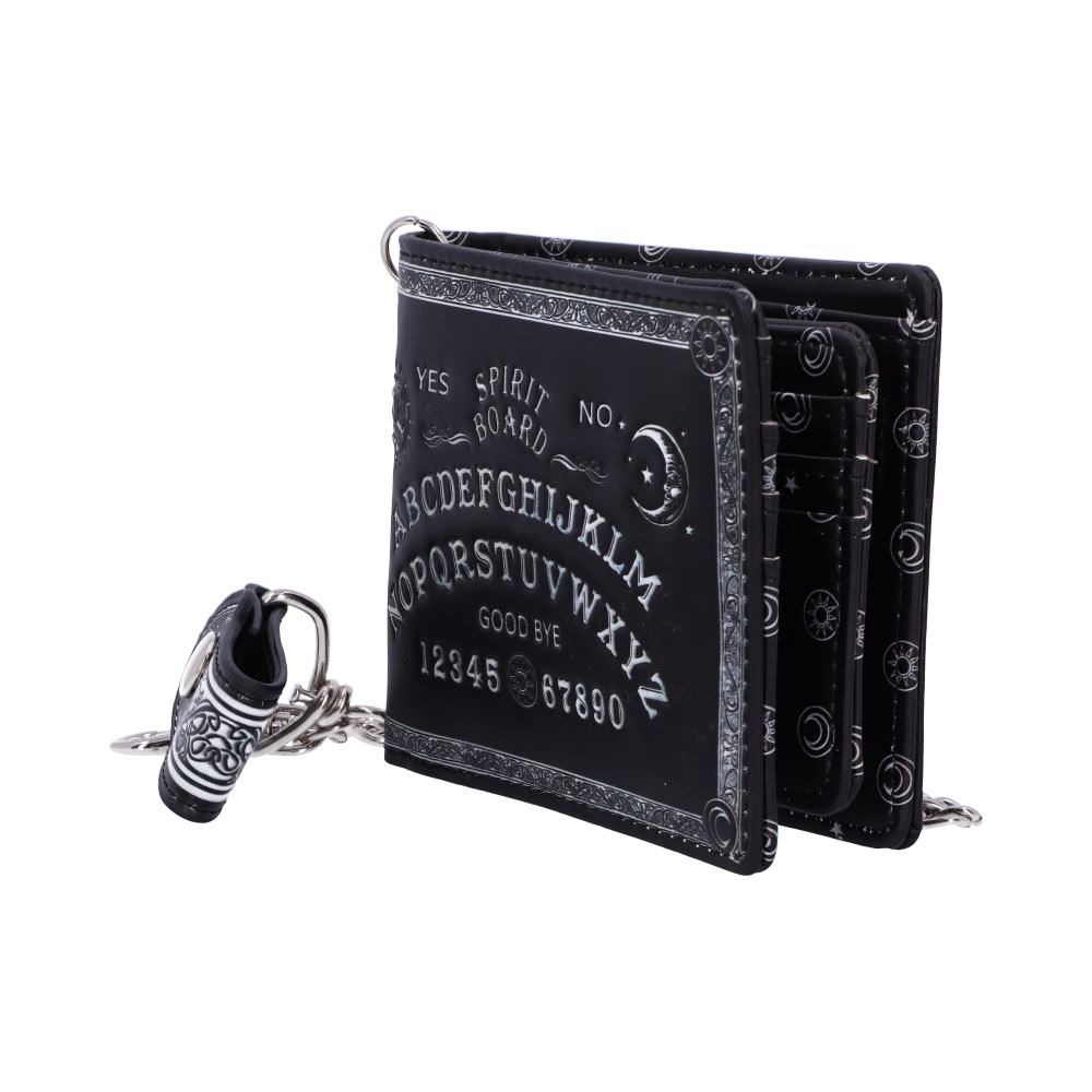 Spirit boards, renowned as potent occult instruments, take centre stage in this design. Framed with intricate baroque patterns, the black backdrop features an arc with the alphabet meticulously inscribed.